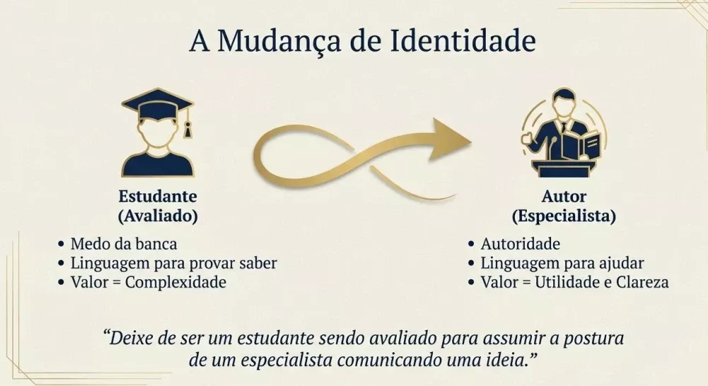 Devemos revisar todo o texto para eliminar traços de estudante e assumir uma postura de autoridade, ajustando a linguagem, reduzindo a complexidade desnecessária e valorizando a informação por sua utilidade e clareza.
