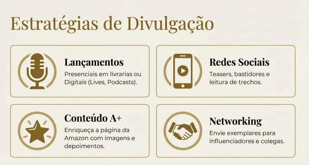 Aprenda a sair do seu espaço acadêmico e alcançar o público por meio de lançamentos, presença nas redes sociais, depoimentos e networking. Essas estratégias criam uma via de mão dupla, na qual o livro expande sua visibilidade e seus horizontes..